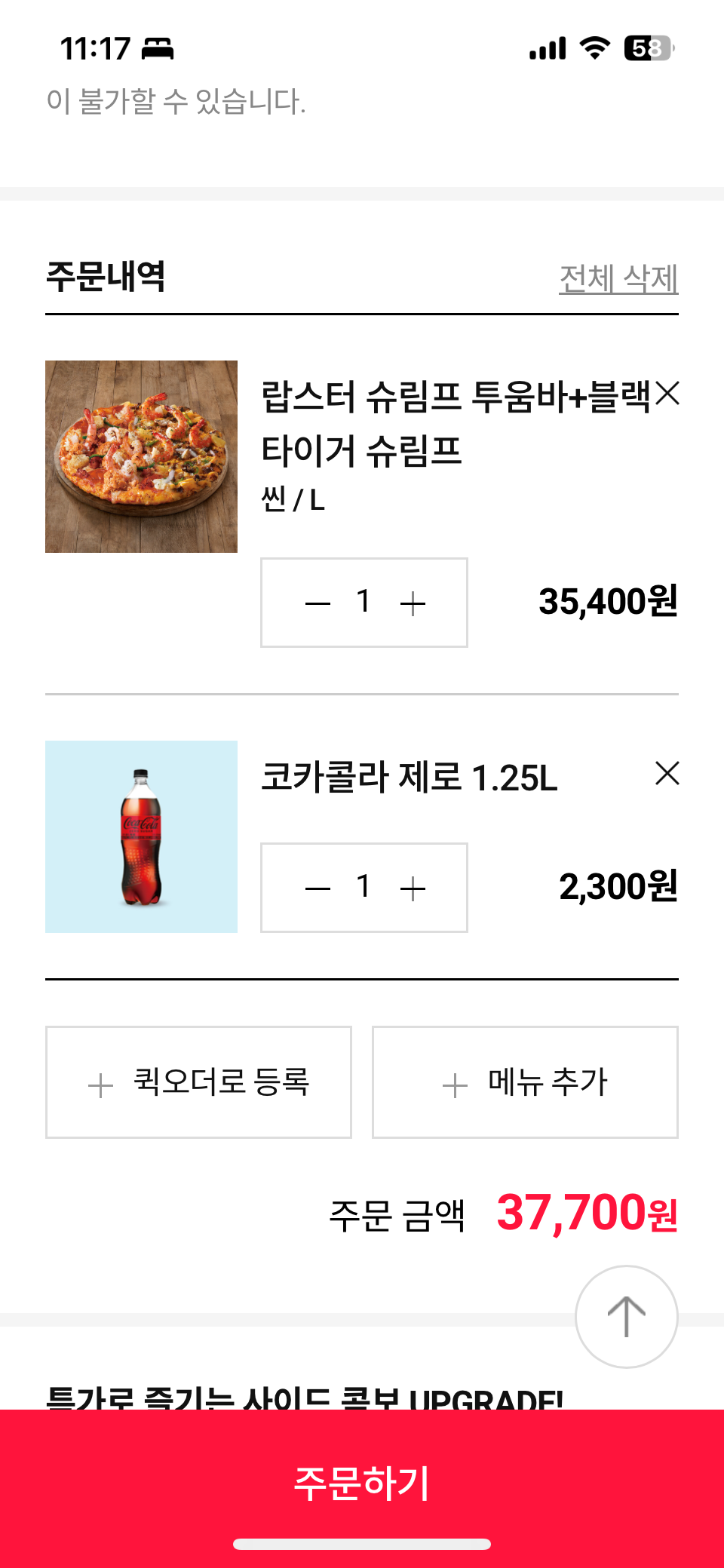 나름 똑똑한 생각이라며 도미노피자 앱에 접속했습니다. 역시 밤이라 대기 없이 바로 접속되더군요. 먹고 싶었던 '랍스터 쉬림프 투움바 피자'를 고르고, 배달 시간도 다음 날 점심으로 여유롭게 설정했습니다.