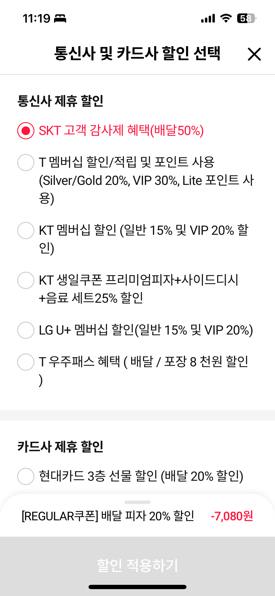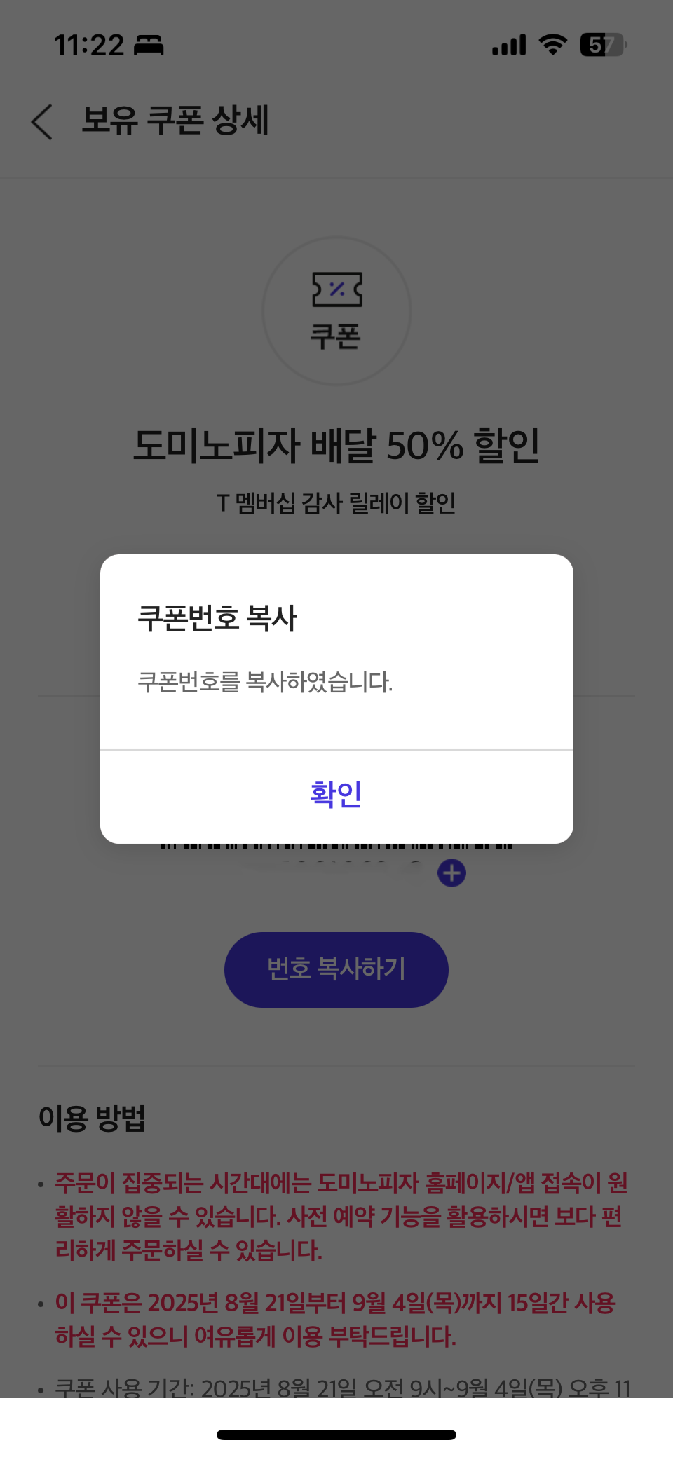 - T멤버십 앱에서 쿠폰을 미리 복사해두세요. 주문 과정에서 허둥대지 않도록 쿠폰 번호는 미리 클립보드에 저장해두는 센스가 필요합니다.